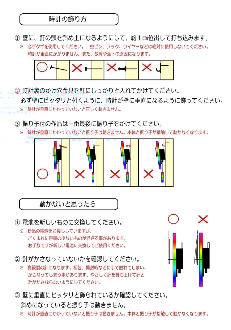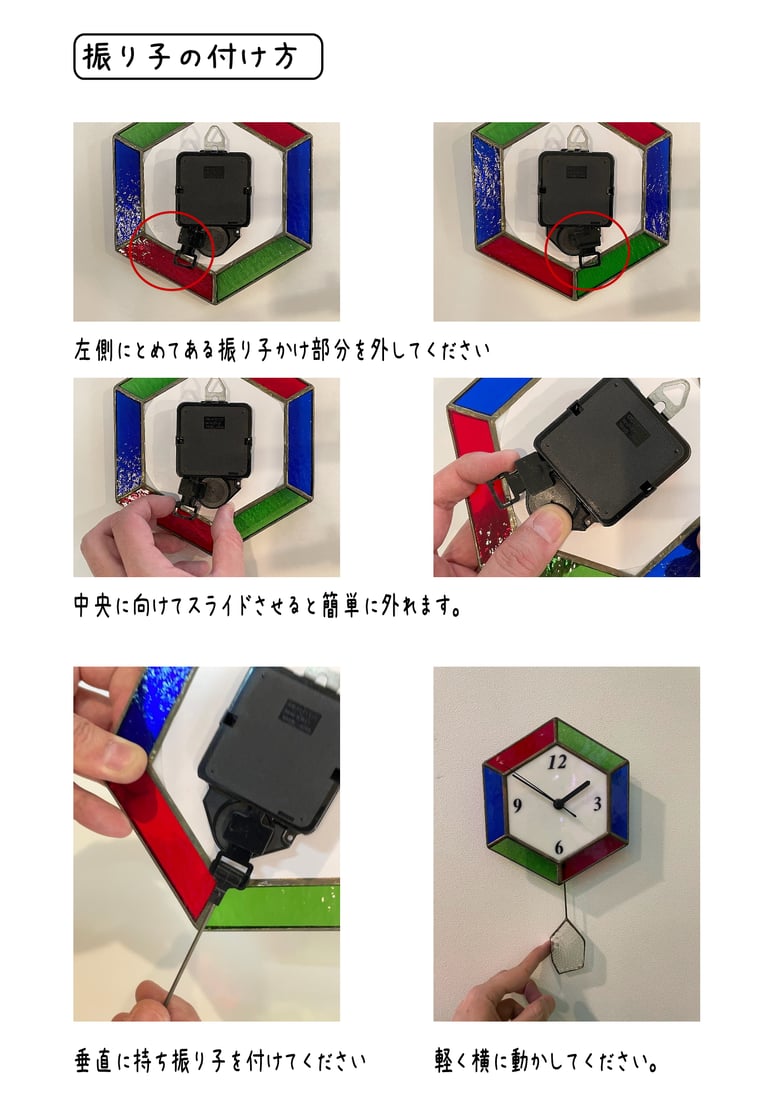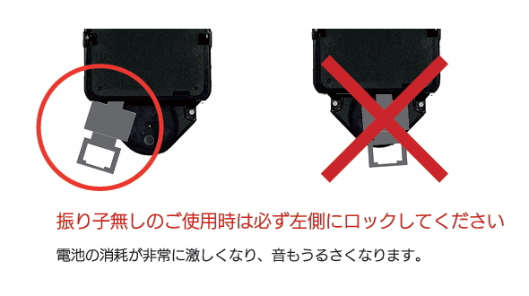 振り子付ムーブメントの時計を置時計としてご使用になる場合は、必ず振り子掛け具を左側にロックをしてご使用ください。
