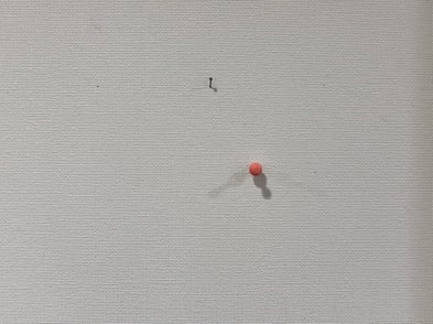 壁に両面テープで固定するか、釘や虫ピンなどで固定してください。
