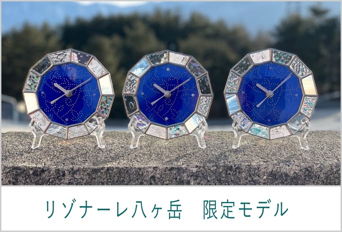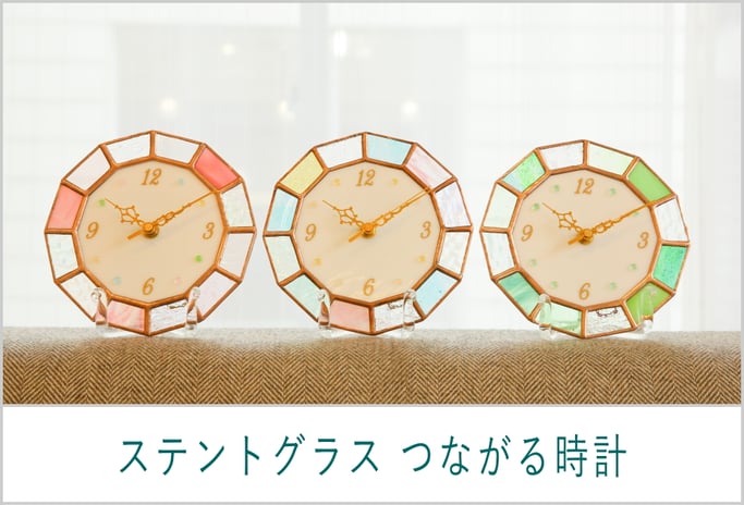 DENKOUBOUでは、三連のステンドグラス時計【つながる時計】で